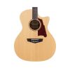 A solid spruce top with a thin satin finish offers rich, resonant tone, while a C-shape mahogany neck and deep cutaway make for exceptional playablity and full access to the fingerboard.