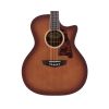 A solid spruce top with a thin satin finish offers a rich, resonant tone, while a C-shape mahogany neck and deep cutaway make for exceptional playability and full access to the fingerboard.
