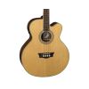 The Dean EABC Cutaway Bass Guitar is a full-sized instrument with 34" scale that produces a deeper, fuller tone than other acoustic bass guitars that cost much more. Design features include a select spruce top, mahogany body, set mahogany neck, balsamo fingerboard, and die-cast chrome tuners. Equipped with Dean's new DMT G03 Preamp system you can easily dial in any tonal options you desire. This bass also features an on-board tuner and comfortable C-shaped neck. Cosmetic touches include an abalone soundhole inlay and multi-ply binding.