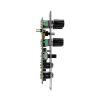 Length CV Attenuverter: Attenuates or inverts the incoming CV. The CV is at unity gain when the attenuator is fully clockwise, inverted when it is fully counterclockwise, and the CV is completely attenuated when the attenuator is in the 12 o’clock position.