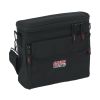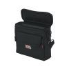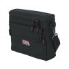 Bag to accommodate half rack wireless “In Ear” monitoring system. Storage for transmitter, ear buds, receiver body back, and power supply