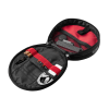 The Gator Cases G-ICON-HDPH ICON Series Headphone Bag is the perfect extension into our award-winning ICON series with DJs and studio professionals in mind. Crafted with premium materials and purpose-driven design, it delivers the ultimate solution to protect, organize, and transport your favorite pair of headphones. Built with a multi-layered semi-rigid construction, the bag features a rugged 1000D black nylon exterior and a 420D red ripstop interior with a Gator Skin pattern for durability and style. A hook-and-loop strap secures headphones firmly in place, while Mil-Spec webbing offers storage for extra headphone cup pads, adapters, and accessories. The compact organization area provides quick access to SD cards, cables, and business cards, making it a versatile choice for performers and creators. Hideaway tactical clips allow attachment to optional ICON DJ controller cases or other bags for seamless portability. Finished with a reinforced nylon handle and compact dimensions, the ICON Series headphone bag delivers reliable protection and professional-grade convenience.
