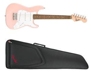 11. Squier Mini Strat - Shell Pink + Fender FEMS-610 Mini Strat Gig Bag