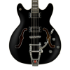 The Hagstrom Tremar Vibrato is a chrome laden, fine tuned piece of art with top notch vibrato performance. This stunningly light and responsive vintage style, top mount vibrato system, delivers impeccable tuning stability, without eating away at sustain or compromising your overall tone. Together with Hagstrom's own longtravel Tune-O-Matic roller bridge and the complementing, self-lubricating GraphTech TUSQ XL nut, you won't have to fret being out of tune with your Hagstrom Tremar type guitars.