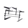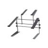 The bottom shelfs accommodates midsize to larger DJ controllers such as NI Kontrol S4 MK3 and Pioneer DDJ-1000SRT. The top shelf fits any size laptop, or smaller controllers like Ableton Push 2, NI Maschine, or Akai MPK225. The stand’s arms and legs are lined with nonslip rubber padding for added stability and reliability.