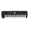 The KORG i3 is a full-featured Workstation featuring 61 full-size, velocity-sensing keys. The keyboard response is adjustable using the three touch-curves; a fourth setting provides a fixed output level. Transpose buttons shift the pitch of the keyboard up or down by two octaves, in octave increments. The professional joystick allows real-time articulation of pitch bend, vibrato, and brilliance during performance; an additional two-band EQ (Low and High) provides a final adjustment to the overall tone. All front panel buttons and controls are conveniently grouped together by function, and the custom backlit LCD delivers valuable visual feedback regarding the instrument’s current settings. A rotary data-wheel encoder can quickly edit the value of the onscreen parameters. The black-out finish, rubberized touch surface, and perforated end panels reflect the distinctive upscale design.