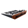 From smooth curves to muscular straight lines. The stylish visuals featuring aluminum and wood are inherited directly from the minilogue, but have been modified to a straight, direct design that bespeaks the power of a monophonic instrument. In spite of its stout construction, the compact and light-weight body is only 1.7 kg / 3.78 lbs., providing an unprecedented combination of toughness and portability.