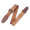 2″ Print Guitar Strap on Polyester with Garment Leather Ends and Levy’s Signature Logo. Black Plastic Slide And Brown Leather Ends. Adjustable From 35″to 60″