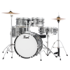 The Roadshow Jr. is an all-in-one five piece kit featuring hardware, cymbals, and sturdy White Poplar shell construction for an exceptional, tuneable, and powerful playing experience.