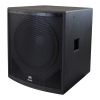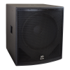 The SP 118 subwoofer features an 18" 1808-8 AL CP Pro Rider woofer. Power handling is 1,200 watts program and 2,400 watts peak, with low frequency response down to 41Hz. Inputs include one four-pin twist lock connector and two 1/4" phone jacks. Threaded pole for mount is included.
