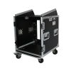 This heavy-duty professional combo rack is 19" deep and features 12U front loading and 10U top loading rails for a wide variety of pro DJ mixers, amplifiers, effects and any other standard 19" pro audio/DJ gear. Other design highlights include a large swinging rear door (for easy wiring) with a beveled cable hole for permanent or semi-permanent installation. It also includes two handles on either side of the case and 4" locking casters for convenient transportation and mobility.