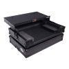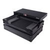 The X-DDJREV1LTBL case with sliding Laptop Shelf is constructed with our rugged signature 3/8" Gig-Ready Series Plywood, reinforced steel ball corners for protection, and easy stacking, and recessed steel padded handles and latches to protect them from damage during transport. There is additional space for cables and small accessories in the back and underneath the unit for convenience, as well as a removable front panel for you to access front input jacks easily. The front removable panel allows for easy access to the front controls and headphone/mic jacks.