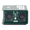 A high-quality, passive direct box that uses 2 proprietary custom-made transformers, one for each channel, for both impedance conversion and isolation. Linear from 20Hz-18kHz, with low distortion and virtually zero phase distortion makes it perfect for live or studio performances. Because of the transformer isolation, problems such as hum and buzz caused by ground loops are eliminated, making it very easy and hassle-free to use. Features include 1/4" thru/input, -15dB pad, and ground lift protected from damage by a protective front panel. Heavy-duty construction, baked enamel finish, and 600ohm balanced output. 3" x 5".