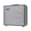 Our custom Black Rhino Hide tolex, Supro Silver/Black grill cloth with subtle sparkle, white welting, a dog bone handle, and engraved headplate for a premium look and feel.