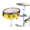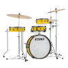 The 3.5" deep tom and floor tom, paired with a 4" deep snare drum and bass drum can be easily packed in just a single bag thanks to the ultrashallow shell. The single-headed toms produce a crisp and warm sound with a strong attack. The double-headed snare drum produces a bright and sharp sound, along with significant low-end from the double-headed bass drum.