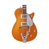Other features include a maple set neck, 12-radius rosewood fingerboard with pearloid Hump Block inlays, bone nut, G-arrow knobs, Bigsby vibrato tailpiece, Adjusto-Matic bridge with pinned rosewood base and Gotoh tuners.This grunge-era beauty comes in Gold Sparkle or Silver Sparkle finishes with silver pickguard, nickel hardware and late-’80s black headstock with Gretsch logo and horseshoe inlay.