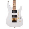 Sleek and sophisticated, the X Series Soloist SLXM DX is decked out in a classic Snow White finish with gold hardware and pointy black headstock.